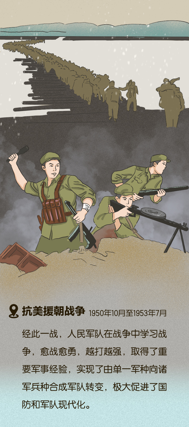 90多年来,人民军队走过井冈山斗争、走过长征,走过抗日战争、解放战争、抗美援朝战争......和平时期,人民军队也始终出现在人民最需要的地方,疫情突至,他们逆行而上;洪水来袭,他们闻“汛”出击。央视网《联播+》特推出互动长图,邀您跟着习主席一起学军史,感受人民军队为人民服务的初心和使命。