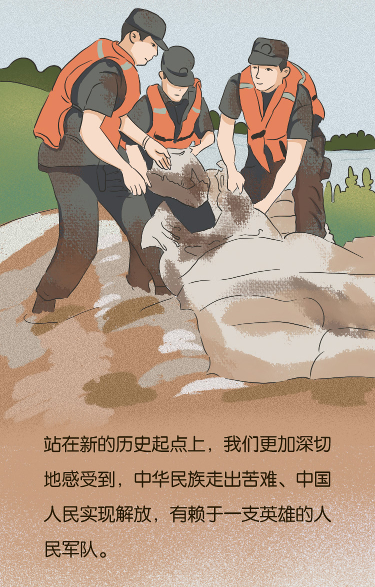 “自那时起,中国共产党领导下的人民军队,就英勇投身为中国人民求解放、求幸福,为中华民族谋独立、谋复兴的历史洪流,同中国人民和中华民族的命运紧紧连在了一起。”党的十八大以来,习近平主席多次在不同场合讲述人民军队发展史。