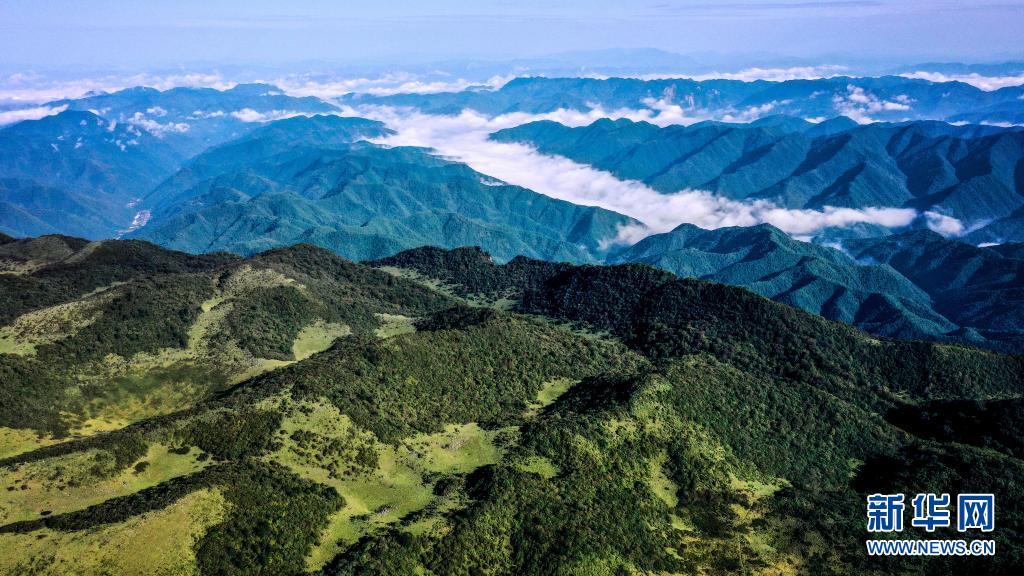 雨后初霁,位于陕西省汉中市留坝县的紫柏山国家森林公园内云雾升腾,宛如画境(2020年9月17日摄,无人机照片)。 新华社记者 刘潇 摄