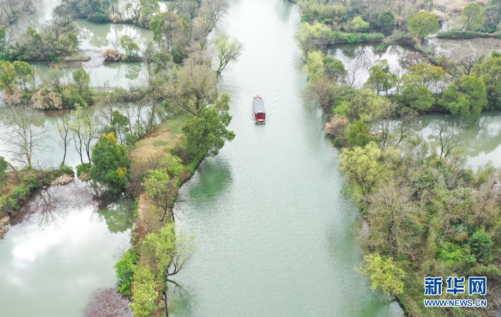 浙江杭州西溪湿地水道(2021年3月2日摄,无人机照片)。 新华社记者 翁忻旸 摄
