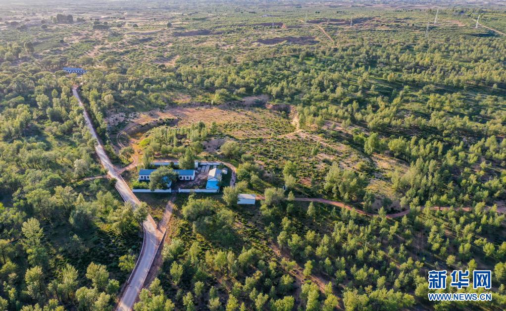 这是2020年9月7日在内蒙古鄂尔多斯市乌审旗毛乌素沙地拍摄的一处治沙站(无人机照片)。 新华社记者 连振 摄