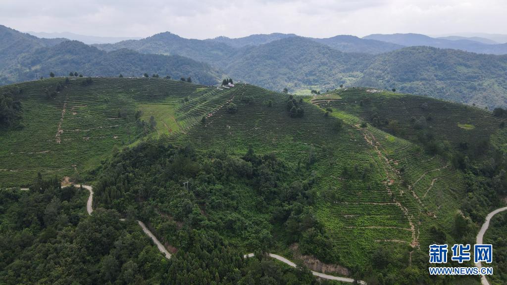 这是陕西省安康市平利县老县镇蒋家坪村女娲凤凰茶业现代示范园区(无人机照片,2021年7月24日摄)。 新华社记者 徐钦 摄