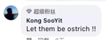 网友Kong SooYit留言:“就让美国像鸵鸟一样(逃避现实)吧!”