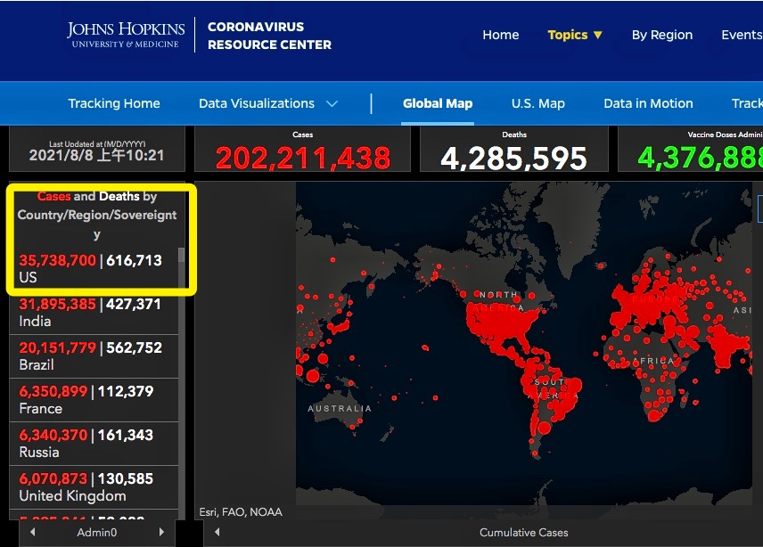 截至北京时间8日上午的统计数据显示,全美新冠肺炎累计确诊病例已超过3573万,病亡人数超过61.6万。