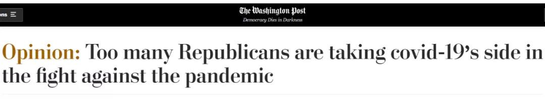 △《华盛顿邮报》专栏作家尤金·罗宾逊发表《太多共和党人在抗疫中站在了病毒一边》一文