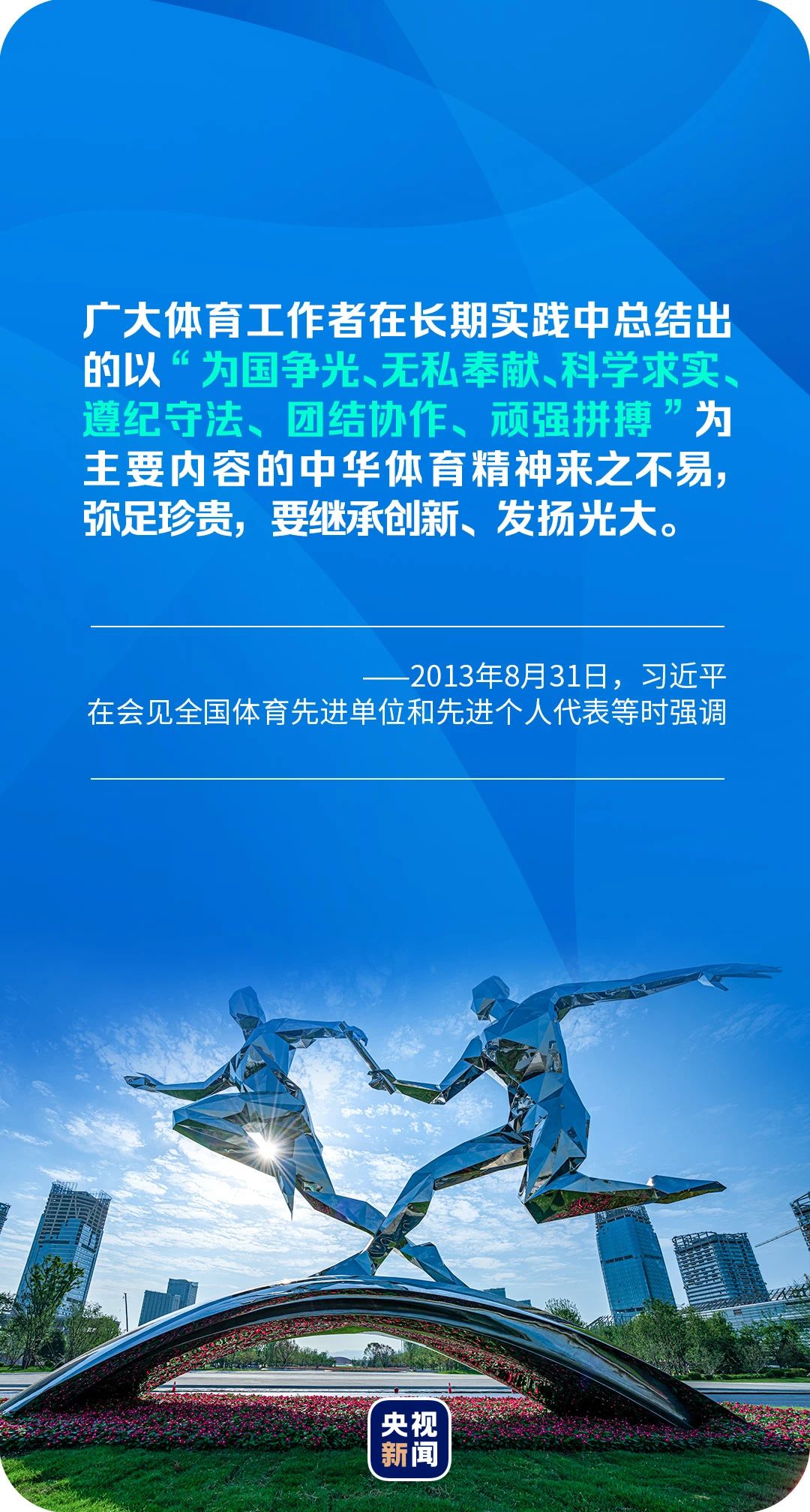 党的十八大以来,习近平总书记高度重视发展体育事业,多次强调要弘扬中华体育精神,弘扬体育道德风尚,推动群众体育、竞技体育、体育产业协调发展,加快建设体育强国。
