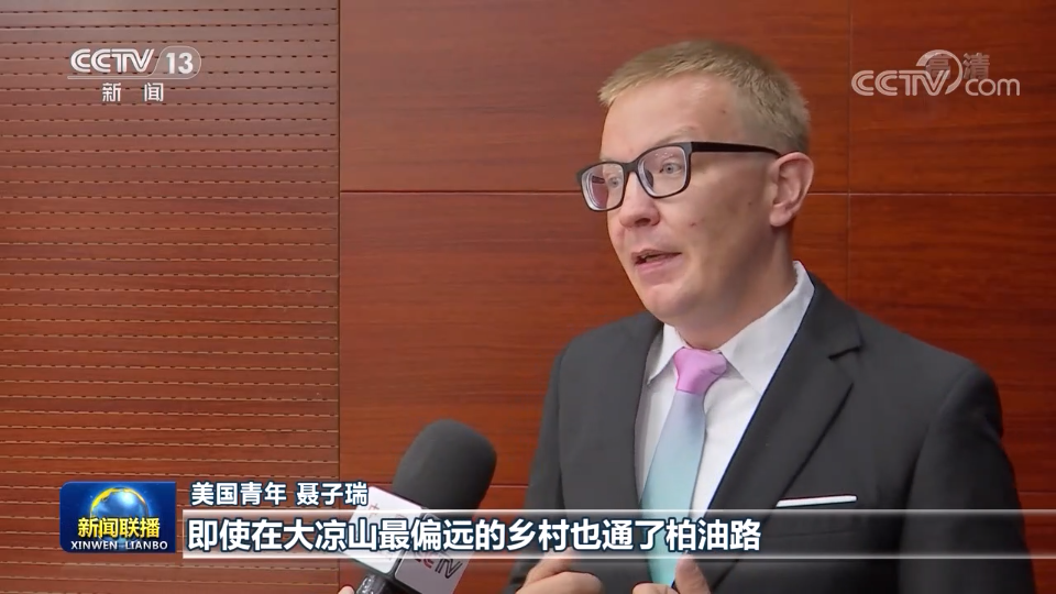 美国青年 聂子瑞:在四川的参访中,我们看到这样的场景,即使在大凉山最偏远的乡村也通了柏油路。或许有些人觉得这么做不值得,但中国政府认为这是必须的。我认为,这再次表明了中国共产党把百姓福祉放在首位。摆脱贫困不仅是中国故事,更是属于全人类的故事。