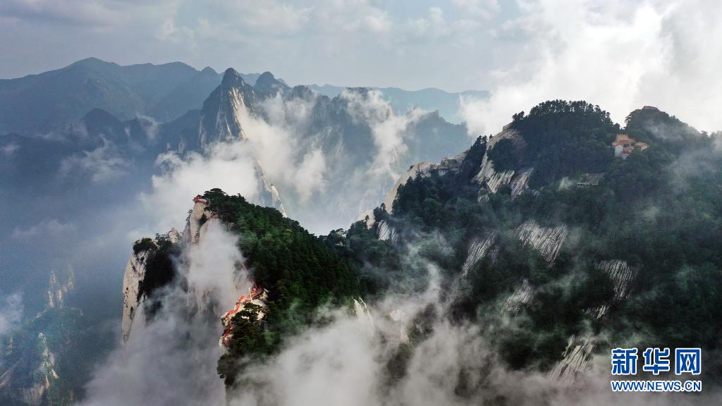 8月14日,奇景幻影的西岳华山风光(无人机照片)。