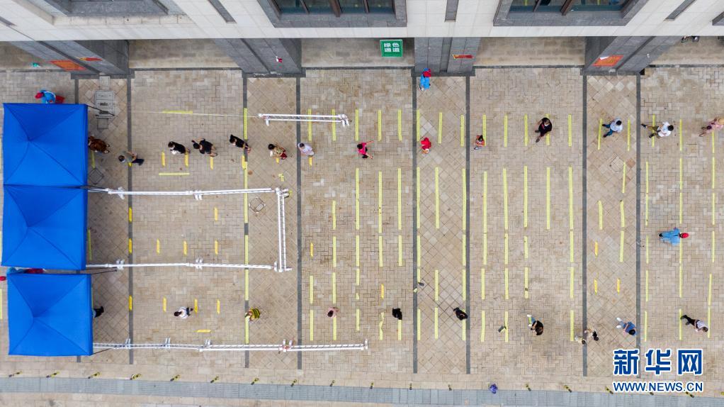 8月14日,市民在扬州市梅岭街道一处核酸检测点排队,准备进行核酸检测取样。