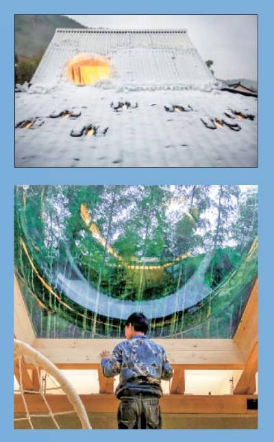 在万涧村,由中规院党费捐赠、土上建筑工作室设计的萤萤公益书屋,是孩子们的学习空间。上图为书屋屋顶的“气泡窗”,下图为书屋内景。受访者供图
