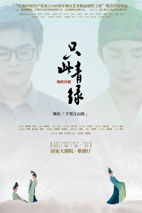 发布会上,剧组首次公布了剧目定妆海报及舞台剧照。精致唯美的人物服装造型及视觉创意,为这幅期待已久的中式美学画卷揭开了神秘面纱。在8月20日至8月22日《只此青绿》于国家大剧院隆重登场之际,笔者带你抢先了解五大亮点,提前感受舞步“描绘”《千里江山图》的魅力。