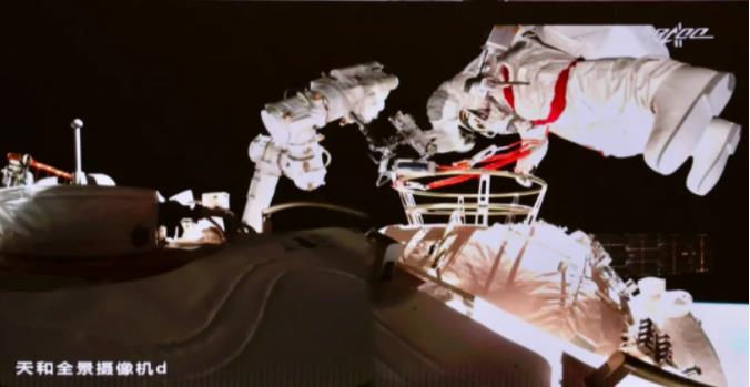 北京时间2021年8月20日8时38分,航天员聂海胜成功开启天和核心舱节点舱出舱舱门,截至10时12分,航天员聂海胜、航天员刘伯明身着中国自主研制的新一代“飞天”舱外航天服,已先后从天和核心舱节点舱成功出舱,并已完成在机械臂上安装脚限位器和舱外工作台等工作,后续将在机械臂支持下,相互配合开展空间站舱外有关设备安装等作业。期间,在舱内的航天员汤洪波配合支持两名出舱航天员开展舱外操作。