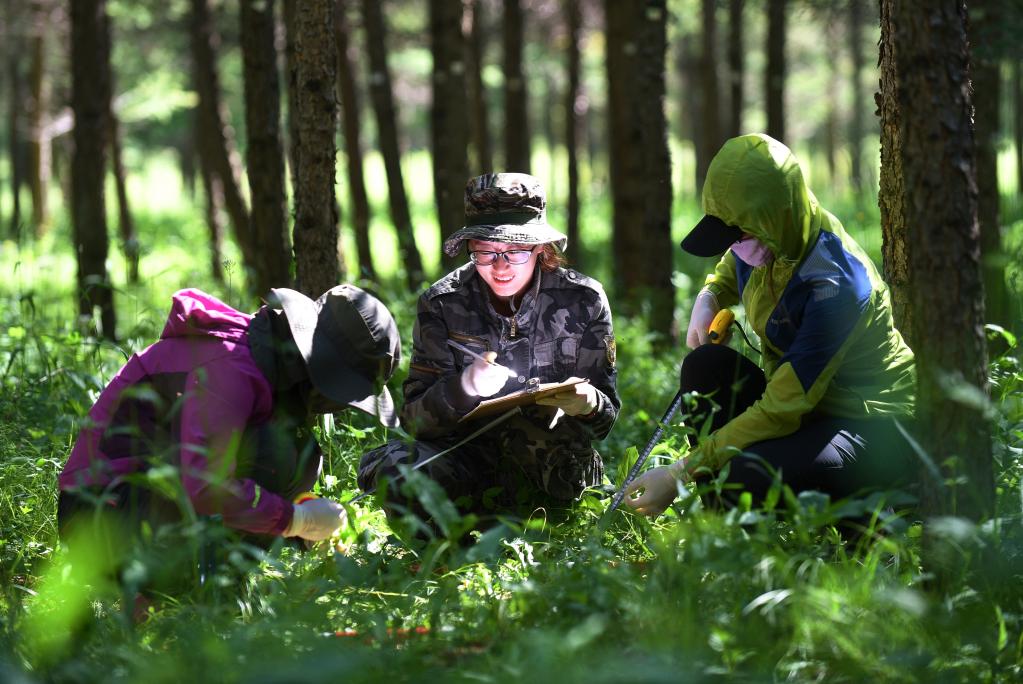 2017年7月12日,工作人员在塞罕坝机械林场采集数据。 新华社记者 王晓 摄