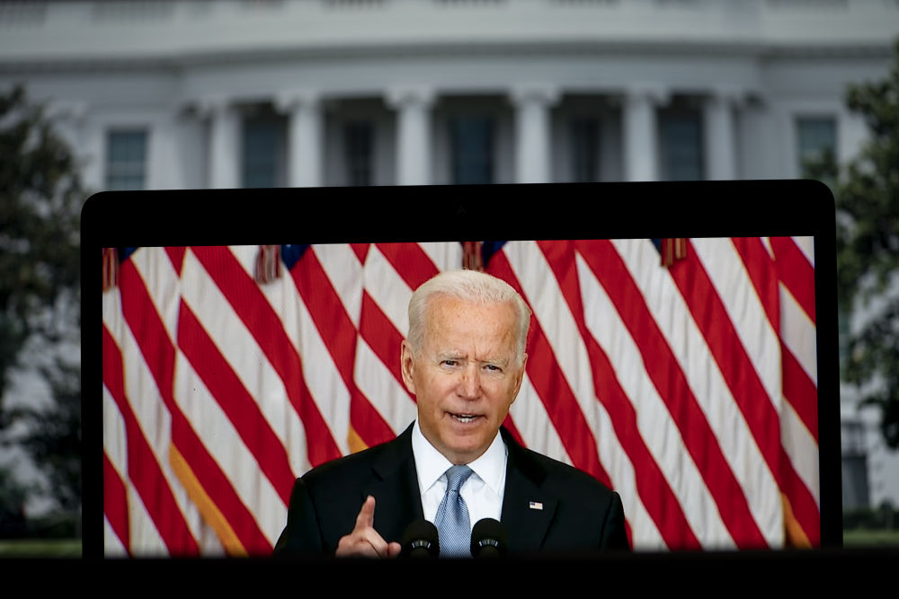 2021年8月16日,美国总统拜登表示,美军撤出阿富汗是正确决定,他同时承认阿局势恶化快于美方预期。(新华社记者 刘杰摄)