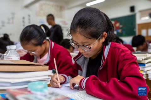 宁蒗宁海民族中学海安4班的学生在教室里上课(8月25日摄)。新华社记者 胡超 摄