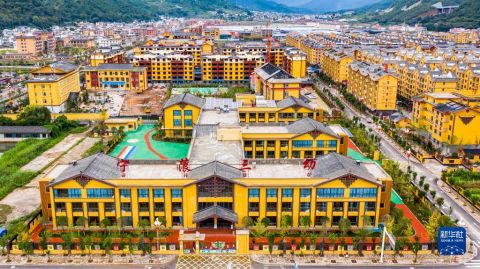 这是2020年建成的宁蒗第三幼儿园一景(8月25日摄,无人机照片)。新华社记者 胡超 摄