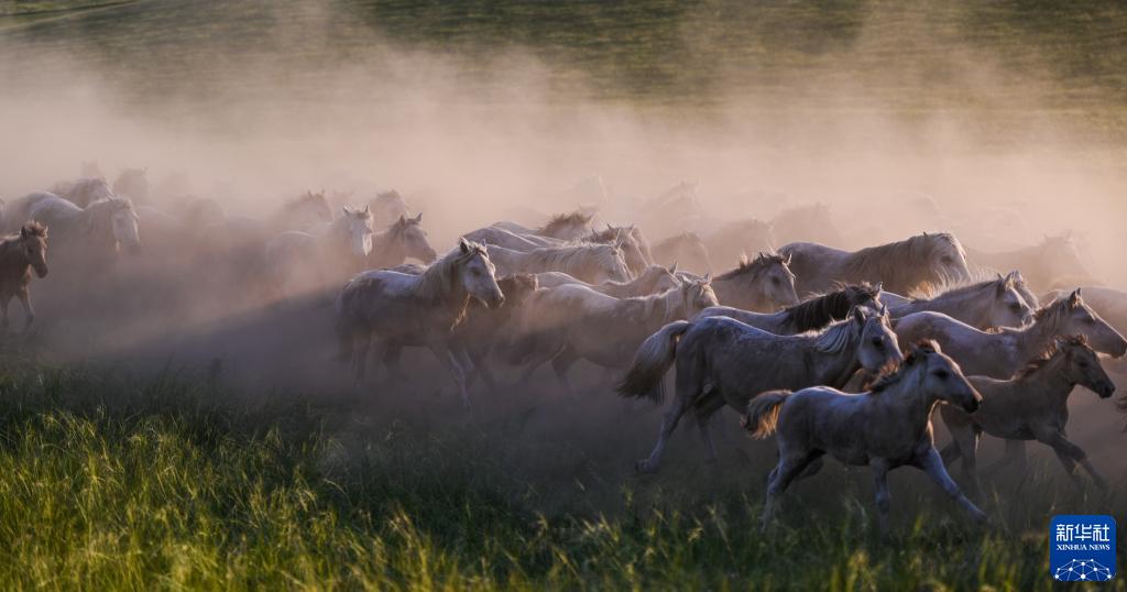 马群驰骋在内蒙古锡林郭勒大草原上(2020年7月31日摄)。新华社记者 连振 摄