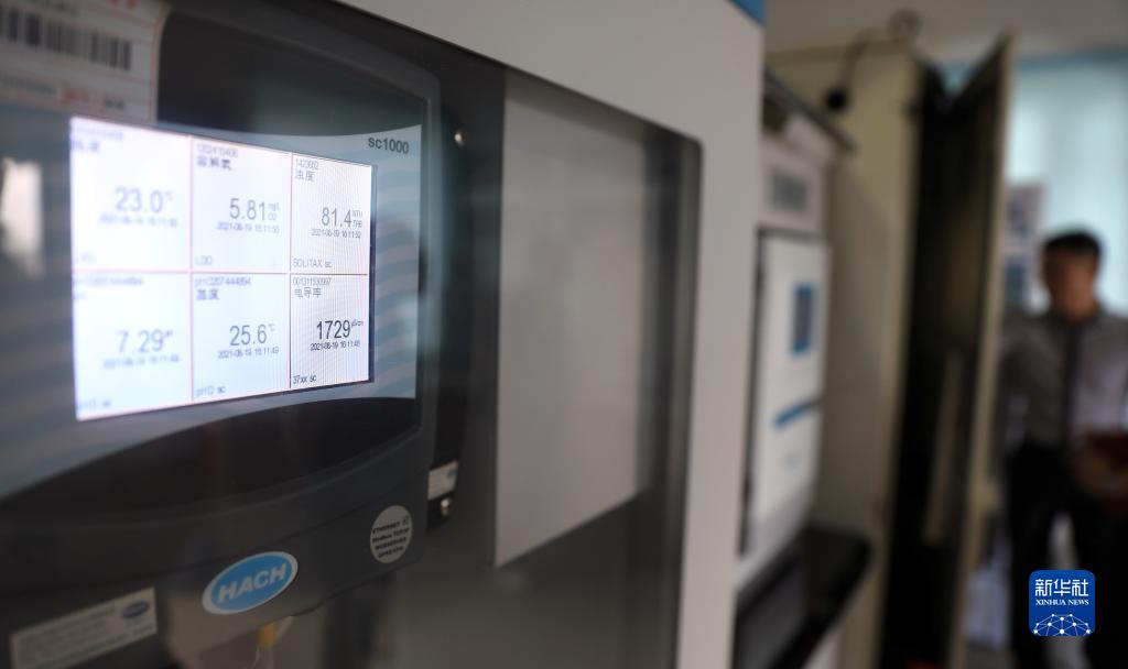 一名工作人员在生态环境部设立的大辽河入海口附近的水质自动监测站内工作(8月19日摄)。新华社记者 姚剑锋 摄