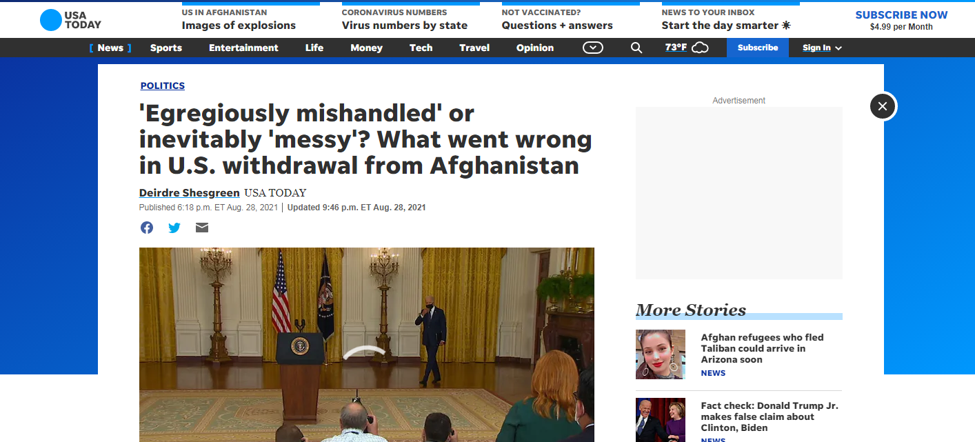 △《今日美国报》在《“处理不当”还是不可避免地“一团糟” 美国从阿富汗撤军到底出了什么问题》一文中指出,20年来,这场战争带给阿富汗人民巨大的灾难和痛苦。如今,阿富汗人又不得不面临新的动荡与不确定性。