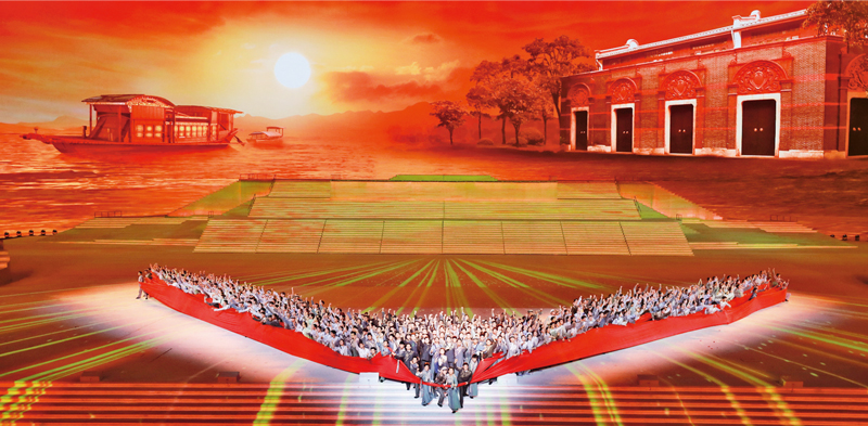 2021年6月28日晚,庆祝中国共产党成立100周年文艺演出《伟大征程》在国家体育场盛大举行。戏剧与舞蹈《破晓》,再现了近代以后中华民族饱经磨难,无数仁人志士前赴后继寻找救国救民真理,直到1921年中国共产党诞生,中国革命的面貌焕然一新。 新华社记者 庞兴雷/摄
