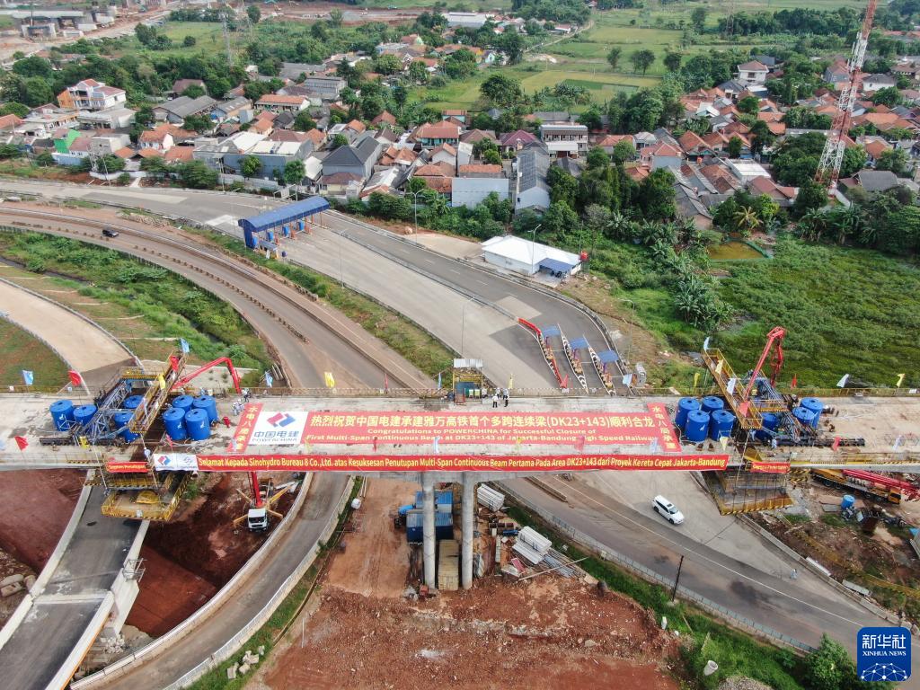 这是2020年5月10日拍摄的印度尼西亚雅万高铁首个多跨连续梁合龙现场。雅万高铁项目是中国高铁全系统、全要素、全生产链走出国门的“第一单”,也是“一带一路”倡议的标志性工程和印尼国家战略项目。新华社记者 杜宇 摄