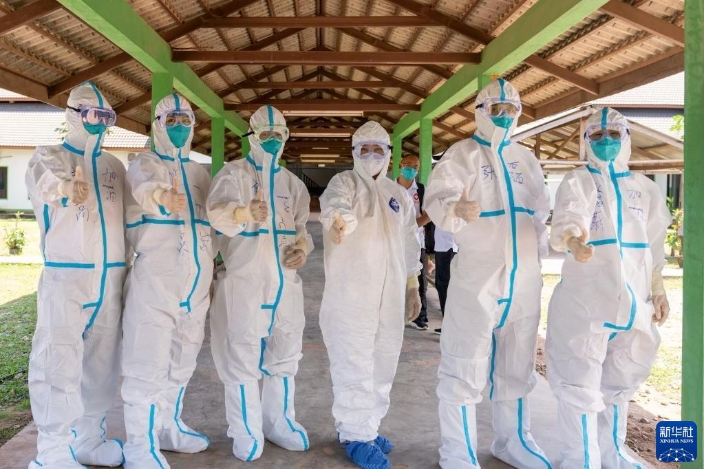 中国抗疫专家组在老挝北部乌多姆赛省准备进入新冠确诊患者隔离病房(5月10日摄)。新华社发(农丽春摄)