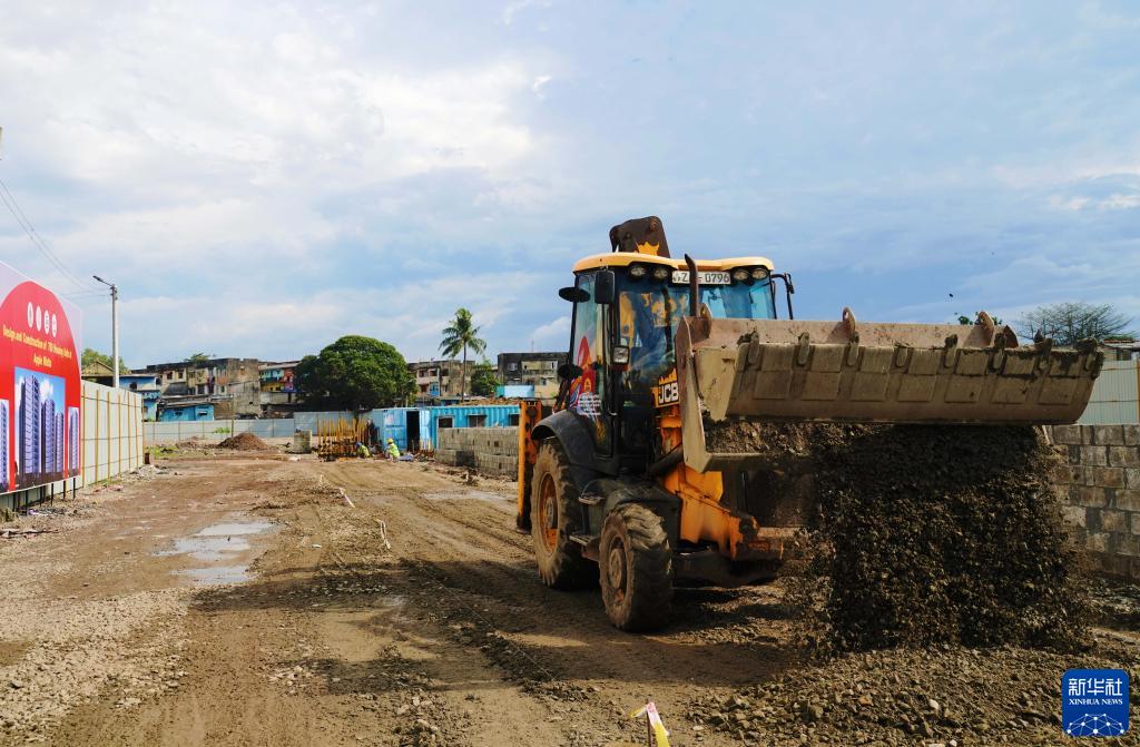 在斯里兰卡科伦坡,挖掘机在保障房项目现场进行施工(1月14日摄)。由中国企业承建的亚洲基础设施投资银行(亚投行)在斯里兰卡的首个保障房项目2020年11月3日在科伦坡北部郊区破土动工。新华社记者 唐璐 摄