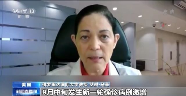 佛罗里达国际大学教授 艾琳·马蒂:最近发生的一系列事情,包括学校开学、劳动节假期以及橄榄球赛事合在一起,极有可能将会导致9月中旬发生新一轮确诊病例激增。