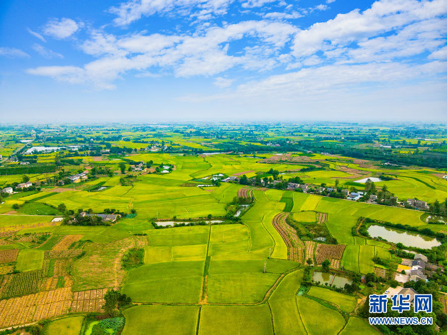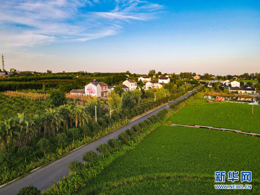 航拍湖北省枝江市问安镇袁码头村田园风景如画。新华网发 陈黄奎 摄