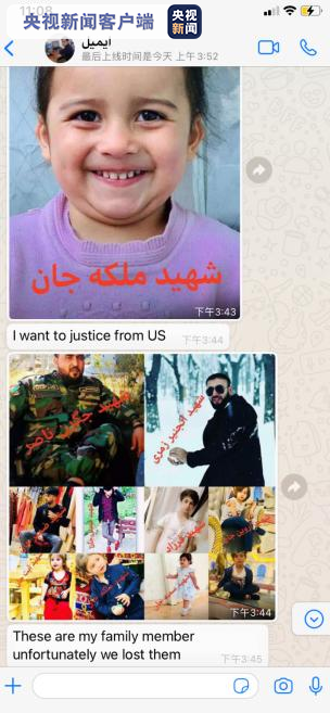 “8月29日下午四点半,我的哥哥,一名技术工程师,开车在我家门前停下。他的三个儿子,最小的11岁;我的小女儿玛丽卡·江,还有我另外兄弟的几个儿女,他们都在车里或车附近。这时美军的飞机炸毁了这个家,我瞬间失去了十个亲人。玛丽卡,我的女儿,她今年才3岁……我曾经为美军做过三年的翻译,我现在还有很多担心,但是美军走了,已经无法联系......我要向美国讨个公道。”
