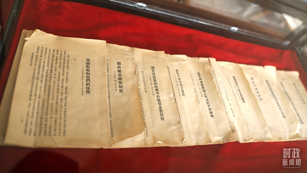 △旧居中展示的文物《目前形势和我们的任务》。(总台央广记者刘会民拍摄)