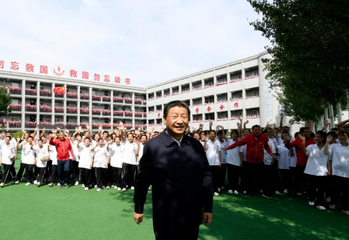 14日上午,习近平总书记来到陕西绥德实验中学,观看同学们练习书法、体育锻炼,同大家亲切交流。习近平表示,中华民族伟大复兴也要靠不断提高人民精神素养,基础在于教育。下一步,我们要进一步办好教育,使教育结构更加合理,更加适应我们实现第二个百年奋斗目标的需要。德智体美劳全面发展,字字千金,都是经过多年总结摸索才得出来的。孩子们要全面发展,做社会主义建设者和接班人,成为对社会有用的人,成为国之栋梁。