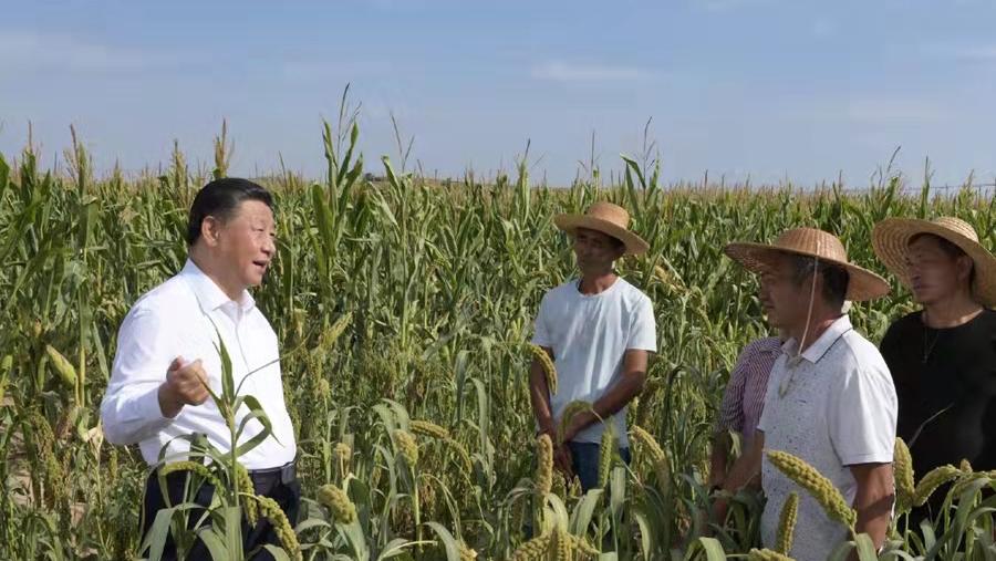 9月13日,习近平总书记在陕西省榆林市考察调研。他来到米脂县银州街道高西沟村,走进田间地头,察看农作物长势,与陕北老乡拉起家常,祝愿乡亲们的日子越过越红火。