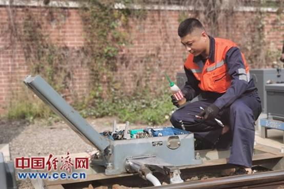 电务人员维修道岔转辙机。中国经济网记者佟明彪/摄