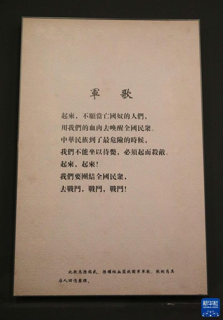 在东北抗日义勇军纪念馆拍摄的孙铭武、孙耀祖创作的《血盟救国军军歌》歌词(7月21日摄)。新华社记者 蔡湘鑫 摄