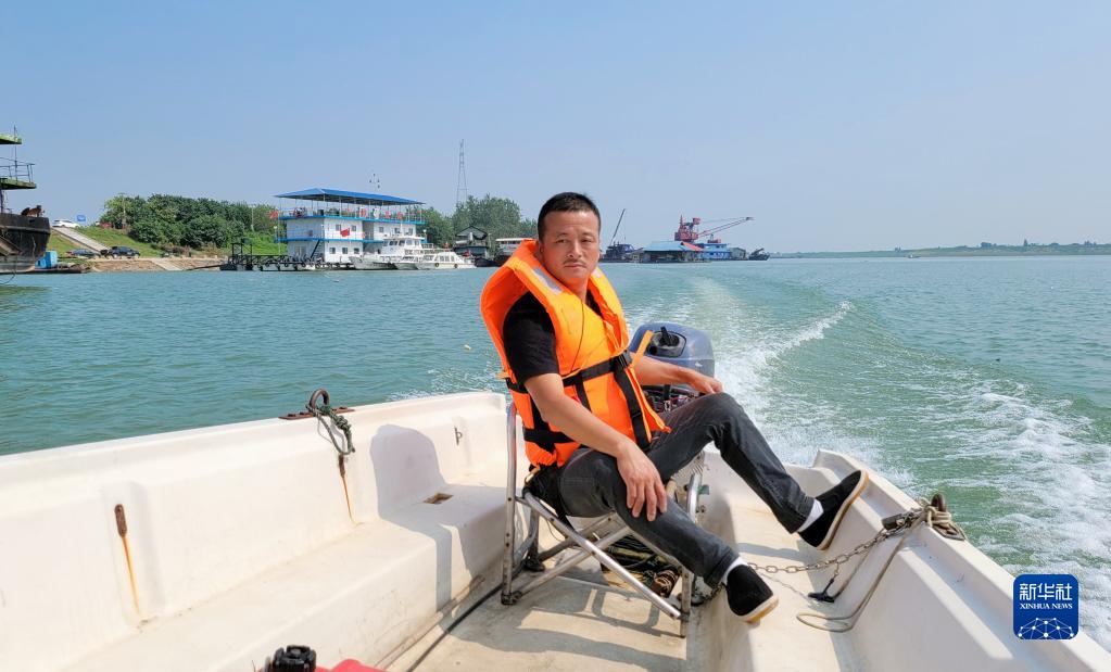 9月17日,刘明安在资江驾驶巡逻船进行护渔工作。 新华社发(陈樑 摄)