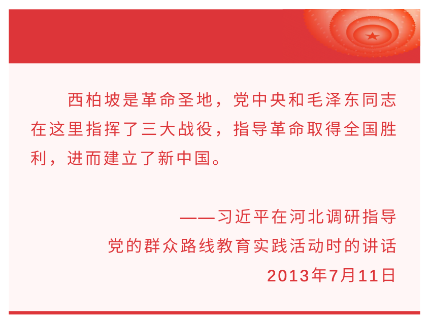 中国共产党的百年辉煌历程中,位于河北省平山县的西柏坡是一个耀眼的红色地标,有着“新中国从这里走来”的美誉——