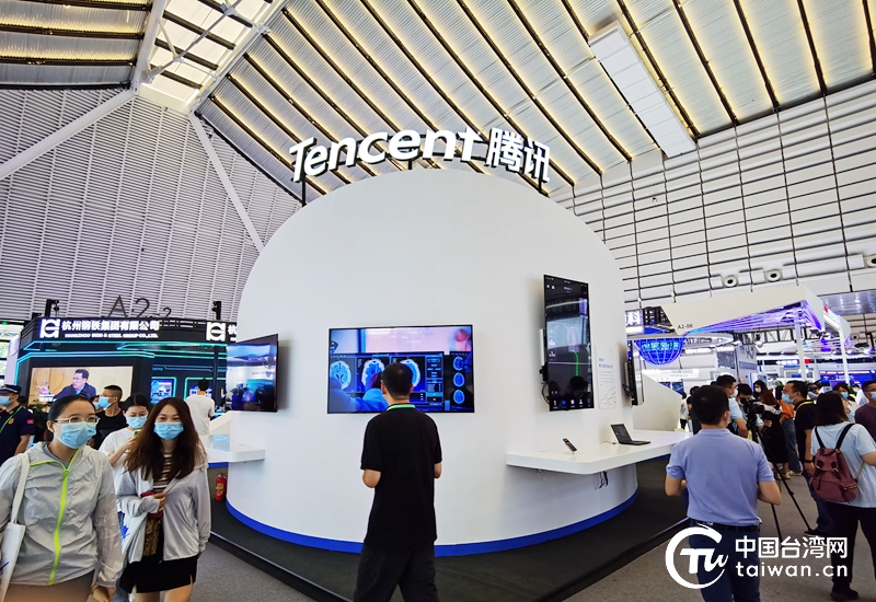 腾讯展台正在展出腾讯会议实践案例。(中国台湾网 张亚静 摄)