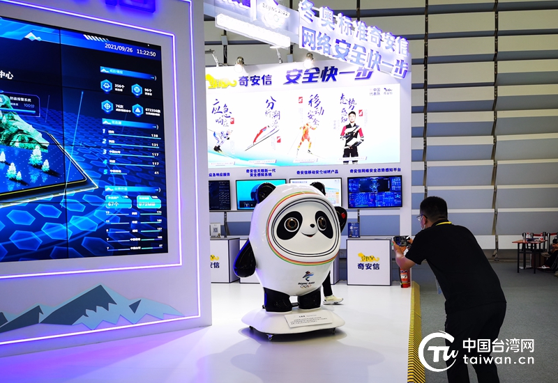 奇安信展示了冬奥网络安全运行指挥系统、网络安全态势感知及城市运营中心、智能换脸演示等产品。(中国台湾网 张亚静 摄)