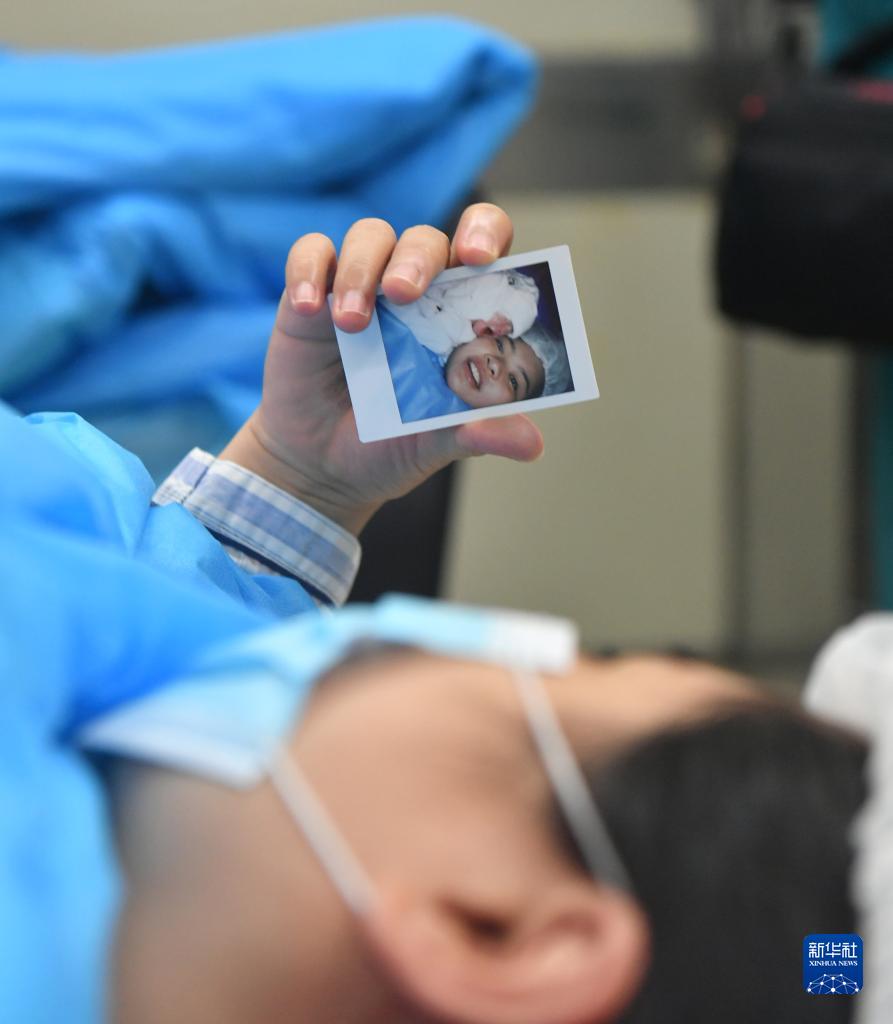 2020年6月1日,在湖北武汉,彭银华的妻子钟欣在看自己与女儿的合影。新华社发(王永胜 摄)