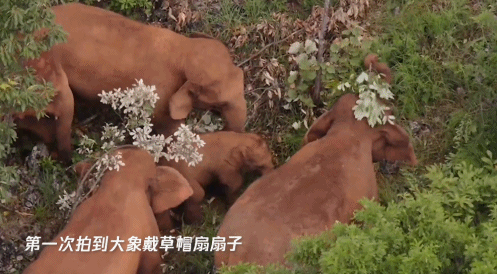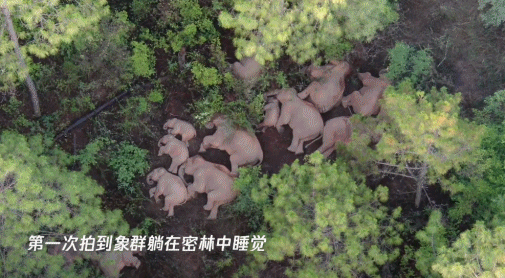 比如,第一次拍到象群躺在密林中睡觉、第一次拍到大象用鼻子翻开井盖喝水、第一次拍到大象戴草帽扇扇子、第一次拍到象妈妈用鼻子帮助小象爬坡过坎、遮风挡雨,第一次拍到大象给小象喂奶。