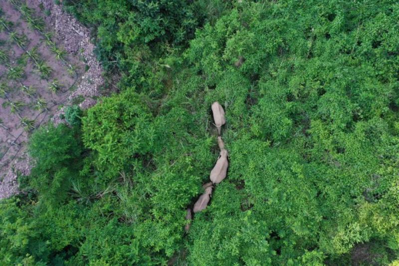 △2021年5月20日,野象群北上途经云南石屏北部山区,穿越山地丛林及火龙果地。