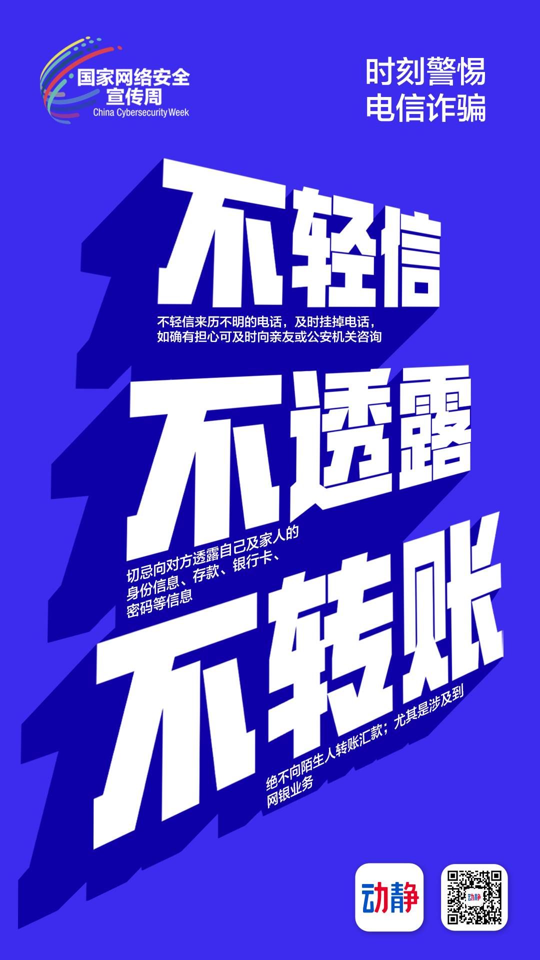 网络安全宣传周丨不轻信,不透露,不转账!这里有份温馨提示