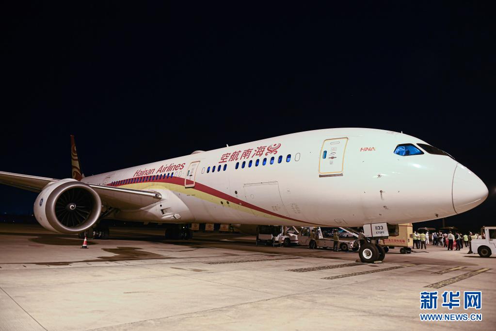这是3月26日在海口美兰国际机场拍摄的海南航空HU787航班。3月27日凌晨,该航班搭载货物从海口飞往法国巴黎,海南自贸港首条定期洲际货运航线正式开通。新华社记者 蒲晓旭 摄