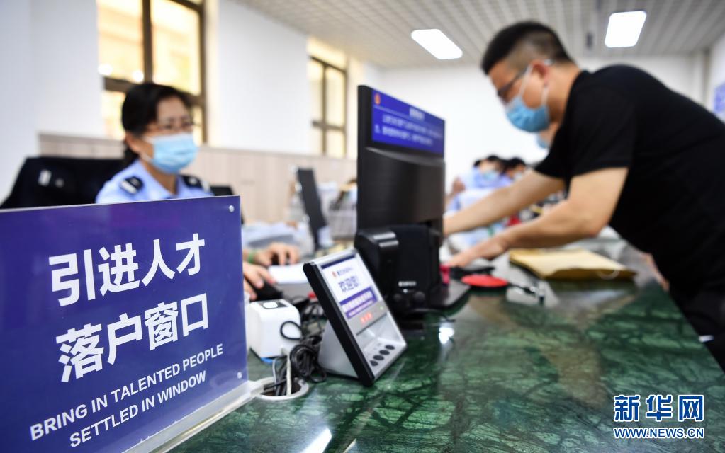 4月2日,外省人员在海口市公安局美兰分局人口和出入境管理服务中心办理引进人才落户业务。新华社记者 郭程 摄
