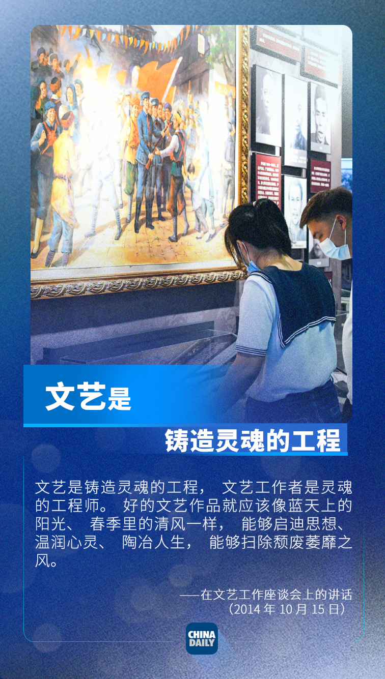 2014年10月15日,习近平总书记主持召开文艺工作座谈会强调,坚持以人民为中心的创作导向,创作更多无愧于时代的优秀作品。关于文艺工作,习近平总书记有哪些重要论述?中国日报网带你一起学习。