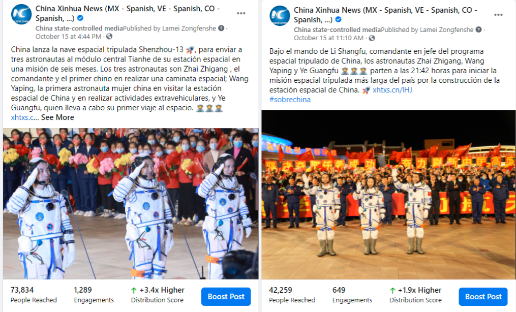 新华社西班牙语海外社交媒体账号当天发布“神十三”圆满发射的消息后,立刻获得了广大拉美网友的点赞和祝贺。截至目前,相关稿件总浏览量已突破20万,总点赞量超过3500次。