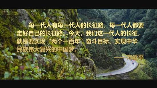 每一代人有每一代人的长征路,每一代人都要走好自己的长征路。今天,我们这一代人的长征,就是要实现“两个一百年”奋斗目标、实现中华民族伟大复兴的中国梦。
