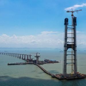 由中交二航局承建的深中通道伶仃洋大桥东索塔(7月1日摄)。新华社记者 刘大伟 摄