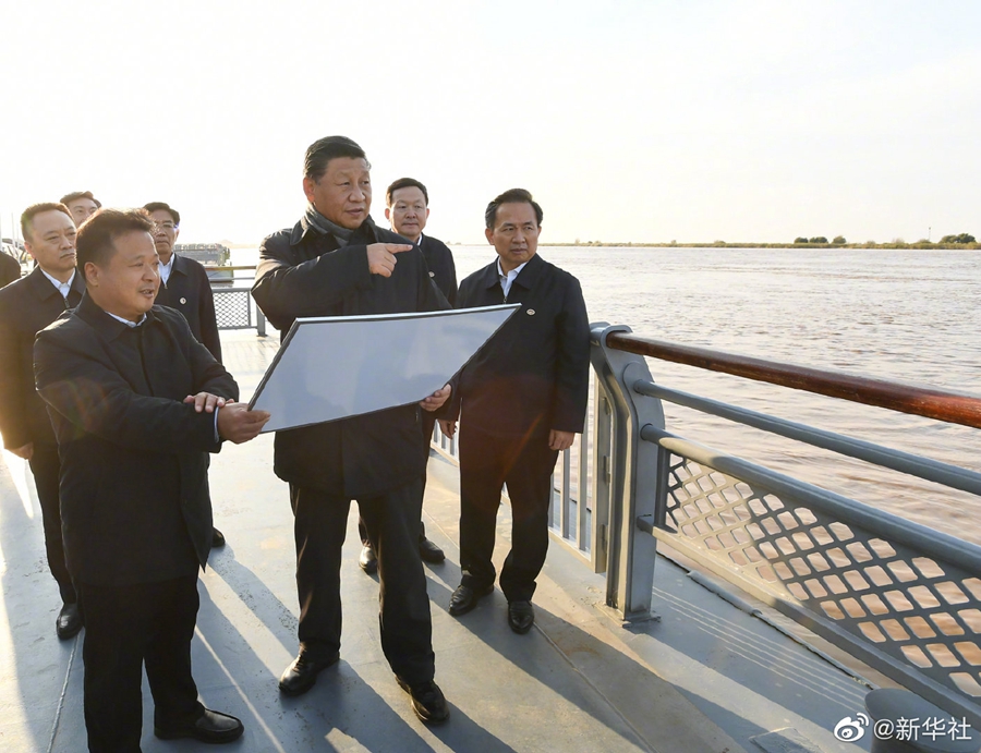 习近平总书记20日在山东省东营市考察黄河入海口。当天下午,他来到黄河入海口码头、黄河三角洲生态监测中心、黄河三角洲国家级自然保护区,实地察看黄河河道水情和黄河三角洲湿地生态环境,了解黄河流域生态保护和高质量发展等情况。